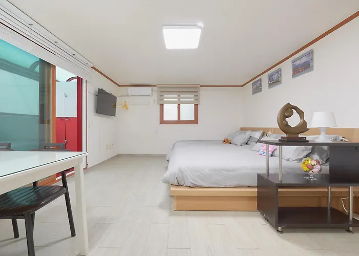 На оборудованной кухне есть электрочайник, холодильник и кухонная утварь для приготовления пищи. Гости могут поужинать в ресторане Hansot Dosirak, который находится в 5 минутах пешей прогулки. Станция метро Hongik Univ, расположенная всего в 450 метрах, обеспечивает удобство передвижения по окрестностям. Вы можете расслабиться на террасе и полюбоваться видом на улицу.